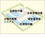 氷蓄熱空調システムの室外ユニットや太陽光発電システムなど、実際に稼働中の省エネ関連設備がご覧いただけます。 |