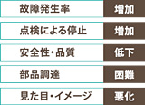 エレベーターの機能低下のなかでも、心臓部である油圧パワーユニット、頭脳にあたる制御部の劣化が進行すると、部分的な修理・交換ではシステム全般の機能回復は望めなくなります。また、長期的に見てもコストがかさむだけでなく、部品の調達も困難になってきます。