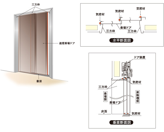*1:2000年6月に施行された改正建築基準法により、エレベーターの昇降路の防火区画に「遮煙性能」を有する防火設備の設置が義務づけられました。