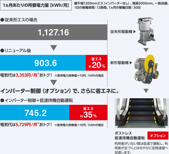いま稼働中のお客さまのエスカレーター、設置されてから何年たちますか?長年使用されたエスカレーターは、適切なメンテナンスをしていても、経年による機能劣化は避けられません。故障時の部品調達が難しくなり、修理時間(停止時間)が長くなることもあります。さらに、エスカレーターに求められる機能や法改正による安全基準も年々変化しています。この先も安心してご利用いただくために、エスカレーターにも適切な時期でのリニューアルが必要です。そこでおすすめするのが、先進のエスカレーターリニューアル〈エスモーション〉。もっと安心・安全に。もっと省エネに。もっと快適に。お客さまのご要望に合わせたリニューアルを実現します。ぜひご検討ください。