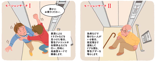 状況に応じて、警告アナウンスや各階停止などを自動的に行います。