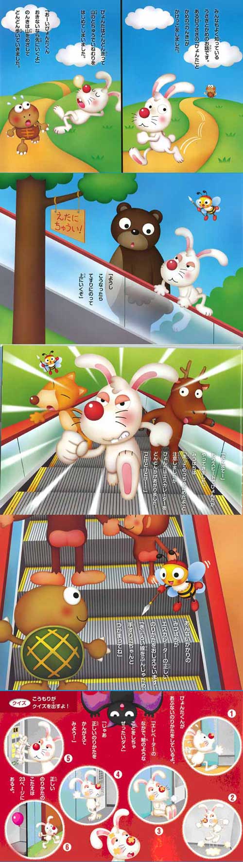 三菱電機ビルテクノサービス株式会社(社長:石川正美)では、子どもたちにエレベーター・エスカレーターを安全に使ってほしいとの想いを込めて、「うさぎとかめ」の物語をベースにした絵本「ぴょんたとのんきの大レース」を作成し、全国の私立幼稚園約8,000カ所に無料配布しました。
