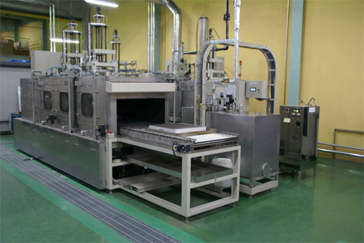 従来の超音波を用いた洗浄ラインに比べて、ランニングコストが低く、省スペース化が可能な新たな洗浄ラインを採用しています。
