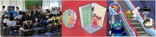 クイズや寸劇を交えた当社オリジナル紙芝居の上演、ゲーム等パネルを使った昇降機の安全な乗り方の説明。地震発生時・停電時にエレベーターを利用していた場合の対応。 |