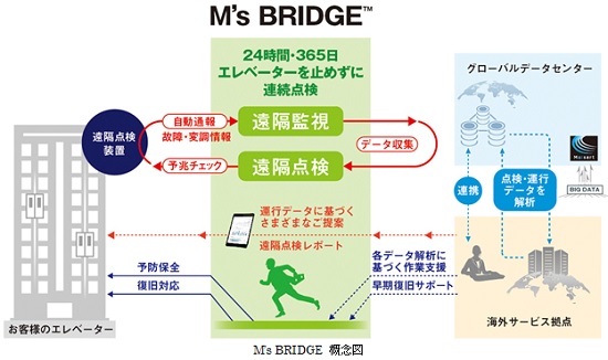 三菱電機株式会社と三菱電機ビルテクノサービス株式会社は、独自のIoTプラットフォームを活用し、エレベーターの常時監視・点検、データ解析を行うグローバル遠隔保守サービス「M’s BRIDGE™(エムズブリッジ)」を10月1日に海外において提供開始します。香港、シンガポールから提供開始し、2021年度末までにその他アジア地区、欧州、米州などで15カ国に展開、その後も順次拡大を目指します。当サービスを世界に広く提供し、エレベーター利用者の安全・安心、利便性の向上に貢献します。