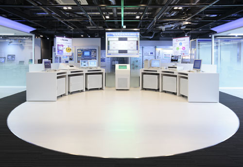 ・現在と近未来のオフィスを再現し、ビル設備運用システム&プランニング「Facima(ファシーマ)」や三菱電機トータルセキュリティーソリューション「DIGUARD(ディガード)」による幅広いデモンストレーションを行います。