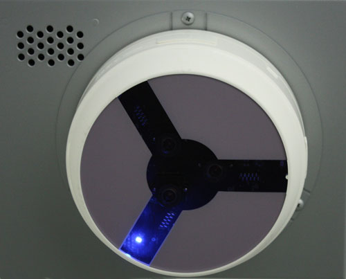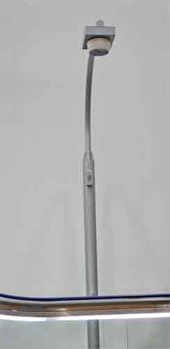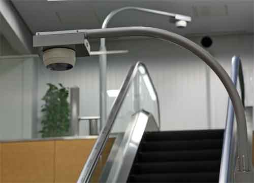 検知センサは、エスカレーターの天井部分などに直接設置できます。天井が高い場所では専用のポールを用いて設置します。