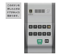 お子さまでも手が届く低い位置に操作ボタンを設置。 このボタンが押された階で止まる時は、ドアがゆっくり閉まります。