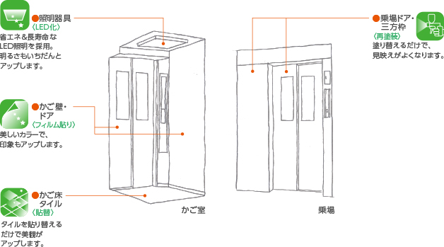 せっかくリニューアルするなら、見た目もきれいにしたい。<エレモーション・プラス>で、いまあるものを活かしながら、これまでのエレベーターのイメージを一新しませんか。