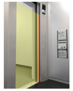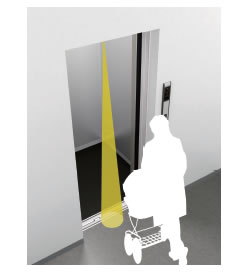 近赤外線利用の反射型光電装置により、閉じかけたドアに近づく乗客や荷物を感知。 乗場からのはさまれを防ぎます。