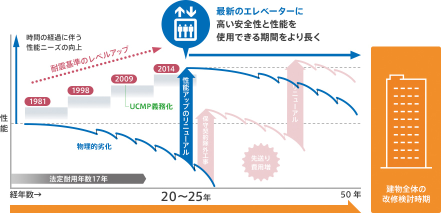 設置後20年を経過したエレベーターは、安全・安心・快適な