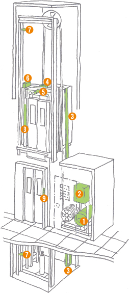 ※上記の1〜9は代表的な取替項目であり、お客さまのエレベーターの機種や改修仕様によって異なる場合があります。