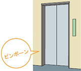 エレベーターの到着をかご上下に取り付けたチャイムで知らせる機能です。