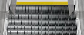 傷や汚れが目立つ乗場のプレートを替えて、イメージを一新。黄色のコムプレートだから、安全性も向上します。